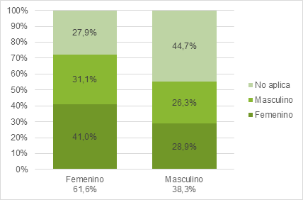 Del total de artículos escritos en coautoría, el 61,6% (61) lleva como primera firmante a una mujer, un 41% (n=41) de ese total tiene como segunda autora también a una mujer; y un 31,1% (n=31), a un hombre. Del total de artículos en coautoría en los que el primer firmante es un hombre (38,3%), un 28,9% (n=28) tiene como segunda autora a una mujer; y un 26,3% (n=29), a un hombre.