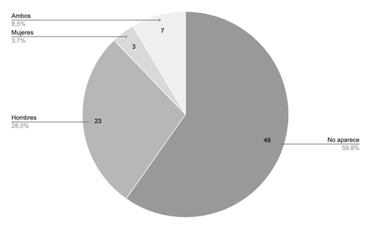 En cuanto a la frecuencia en el género de personas autoras o voceras de la innovación, la figura 1 muestra que la mayoría de las veces la innovación la respalda una marca u organización y no se adjudica a personas concretas. En las universidades, que son quienes han realizado en Costa Rica casi el 80% de la investigación publicada en los últimos 20 años (Sánchez, 2022), los resultados cambian y se refleja predominancia de hombres (7 ocasiones) contra solo una aparición de mujeres, y otras 3 veces donde se mencionan ambos. En las cámaras empresariales las 2 menciones son de hombres, y en el gobierno, 8 son hombres y 2 de ambos sexos, sin mención a mujeres.