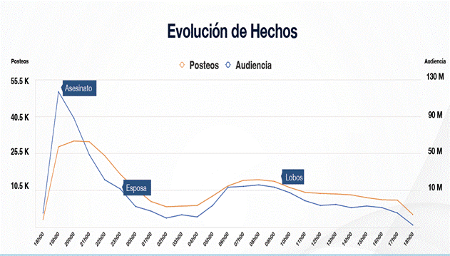 El primer impacto comunicacional del 9 de agosto fue luego de la confirmación del asesinato de Fernando Villavicencio, hacia las 18h30 de ese día. Los datos reflejan que durante la primera hora del suceso hubo más de 50.000 posteos, con una audiencia que superaba los 100.000.000, producto del impacto internacional de la noticia. La plataforma de mayor alcance fue TikTok.