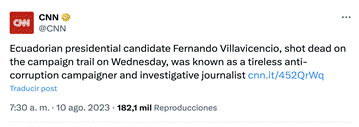 ● ¿De qué manera la conversación digital recoge los hechos durante las primeras 24 horas tras el anuncio del asesinato del candidato Fernando Villavicencio?