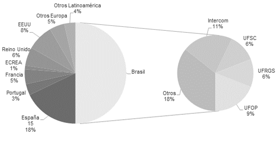 Más allá de Brasil, entre la heterogeneidad de respuestas se destaca un importante número de menciones a España (15 menciones), situando a la Universitat Autónoma de Barcelona y la Universidad de Navarra como principales polos de referencia; Estados Unidos (7 menciones) con el liderazgo de la Universidad de Duke; y Reino Unido (4), donde destacan la Universidad de Sunderland.