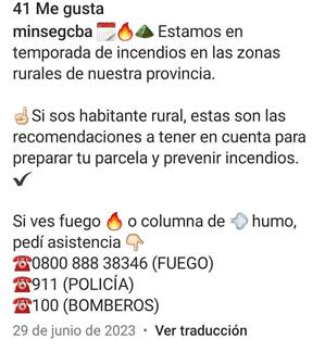 Como se puede observar en los posteos realizados desde el organismo provincial, los espacios que generan las redes sociales para comunicar el riesgo de incendios forestales permiten sensibilizar y concientizar a la población sobre los riesgos, brindar información y alertas, promover las redes de apoyo y solidaridad, construir confianza, reducir las vulnerabilidades y aumentar las capacidades de respuesta, entre otras acciones.