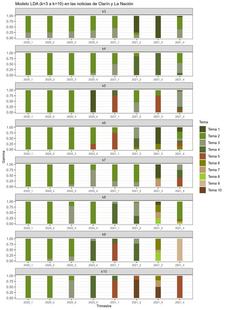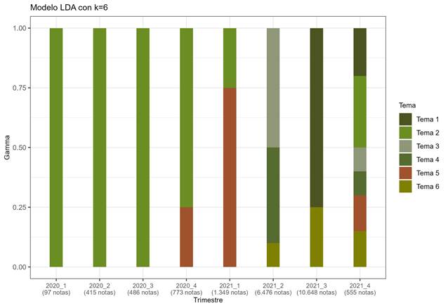 [7] Los valores obtenidos en el análisis LDA de la cantidad de noticias por trimestre, el número de temas en cada valor k, y los parámetros b, se pueden revisar en Cruz-Mendoza et al. (2025)