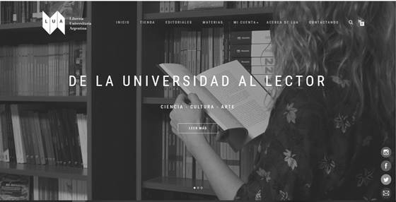Figura 2. Imagen de la comunicación de la Librería Universitaria Argentina en la web. (Fuente: captura de pantalla de https://lua.siu.edu.ar/, abril de 2020).