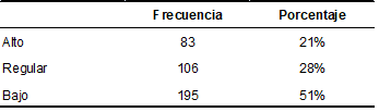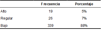 De acuerdo con la Tabla 2, el 51% de los pobladores encuestados percibe los anuncios publicados por las organizaciones gubernamentales del Perú con un nivel bajo de actualidad. Más de la mitad de los pobladores consigna que la información recibida no es oportuna, ya que, más que alertar para que se mantengan preparados, crean pánico y una eventual desinformación sobre las medidas para prevenir el contagio.