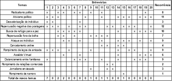 A segunda fase ocorreu no campo por meio de entrevistas com usuários de RSD, o que permitiu captar a discussão dos simpatizantes e antagonistas sobre os mais variados temas que polarizam as redes sociais.