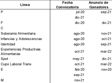 pagaron además líneas cuyas convocatorias se realizaron en 2019: Líneas D, A y