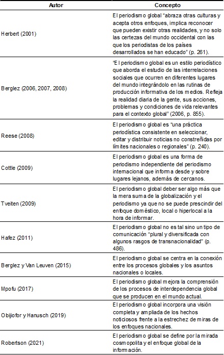 los expertos han elaborado respecto al concepto de “periodismo global”. El