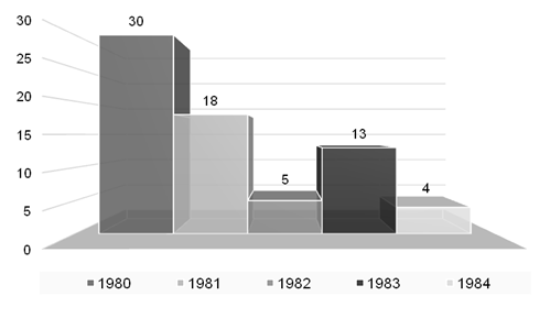 Un primer análisis, con recorrido cronológico entre 1980 y 1984, permite identificar la presencia de 38 notas, 6 editoriales, 4 entrevistas, 19 recuadros,9 2 pósters/solicitadas y 2 cartas abiertas.10