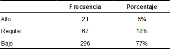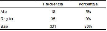 De acuerdo con la Tabla 2, el 51% de los pobladores encuestados percibe los anuncios publicados por las organizaciones gubernamentales del Perú con un nivel bajo de actualidad. Más de la mitad de los pobladores consigna que la información recibida no es oportuna, ya que, más que alertar para que se mantengan preparados, crean pánico y una eventual desinformación sobre las medidas para prevenir el contagio.